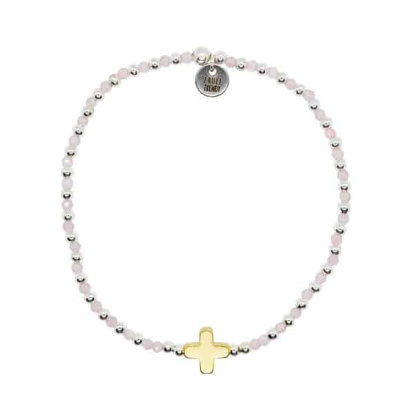 Ses perles en cristal de bohème rose pâle facettées captent la lumière avec douceur, tandis que l’argent 925 et la croix en plaqué or 24k ajoutent une touche raffinée et féminine.
