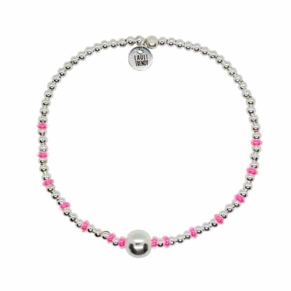 Le bracelet Olia 2 se compose de perles en argent 925 et de perles japonaises rose fushia, ponctuรฉes dโ€™une perle boule en argent qui capte la lumiรจre avec justesse.