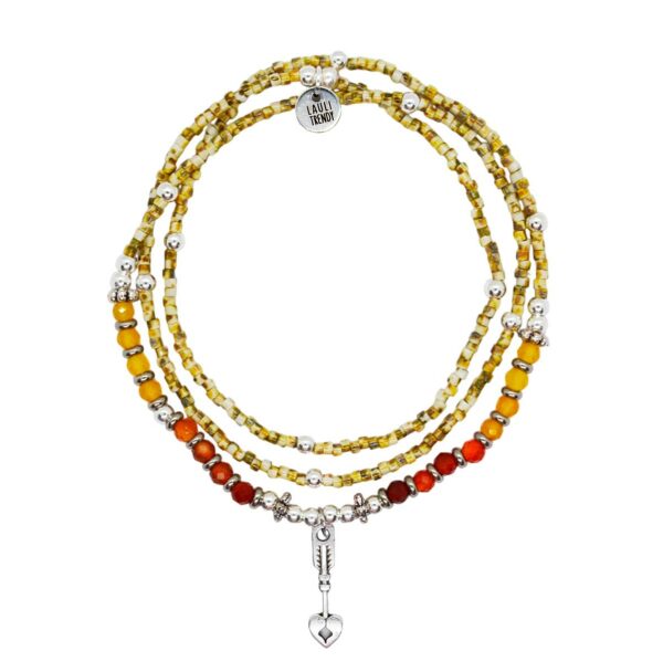 À porter en bracelet trois tours ou en collier, pour un style libre, solaire et affirmé.
